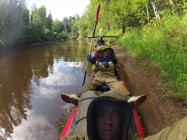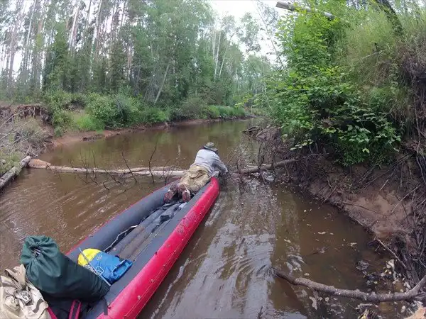 Поплыли. Весь маршрут против течения. Но проблема небольшая, так как из-за отсутствия воды само течение не чувствуется. Уровень воды так низко, что мы не смогли доплыть до озеро Водораздельное, и остановились на реке Язёвая. Дальше было не смогли.