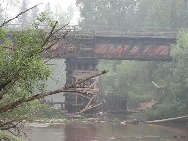 Дорога от Катайги здесь заканчивается. Мост на реке Ломоватая разрушен с 2010. Обещают его отремонтировать, но пока ничего не сделали. Местные переживают, за мостом для них в тайге всё: грибы, ягода и т.д., но сейчас туда добраться не просто.
