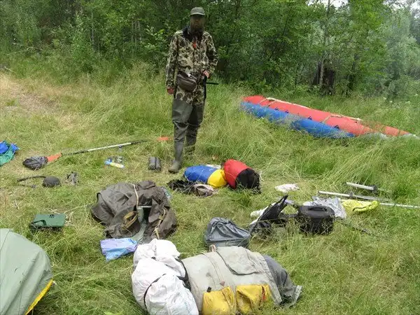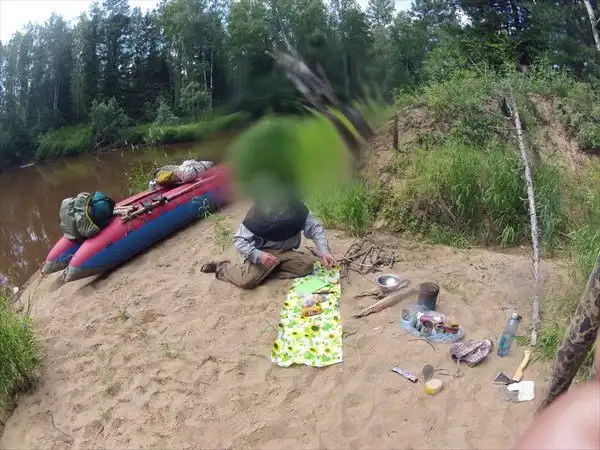 Около 7 утра. Приготовления: катамаран, байдарка, рюкзаки, еда....