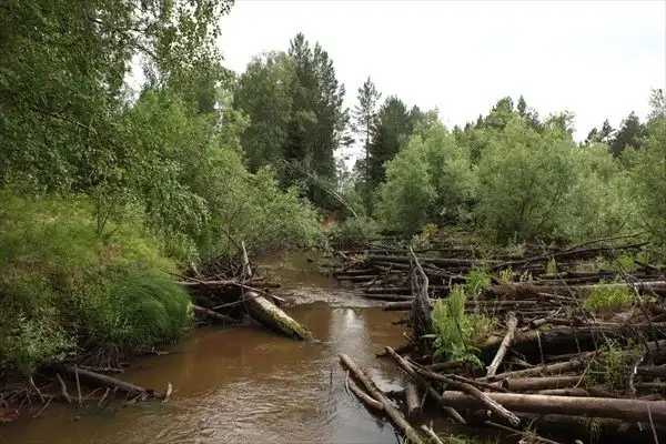 По пути довольно часто встречаются завалы деревьв. Надо пилить или по тайге обходить их.
