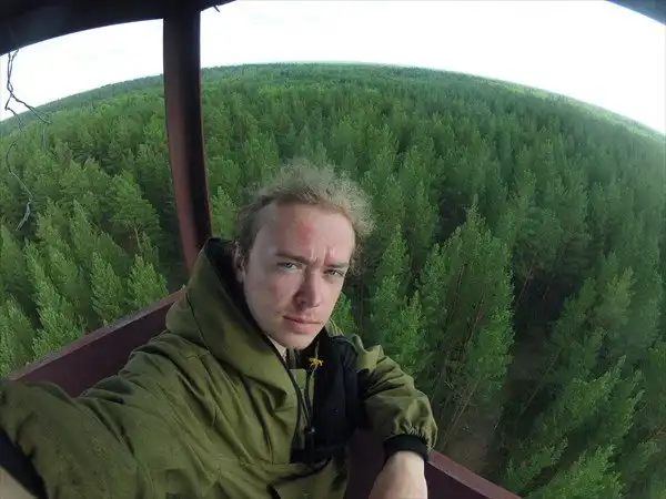 Вид на тайгу с телефонной вышки. Телефон не работает.