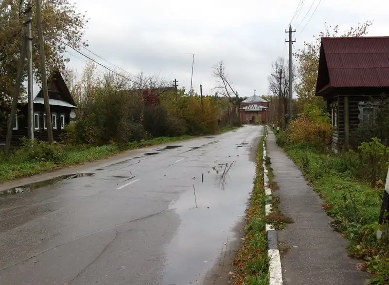 Близ церкви - почти городская улица, выдающая в старом Владимирском типичное для Поволжья торговое село, этот русский аналог еврейских местечек (для сравнения - Ивье, Шаргород). В отличие Городца, Большого Мурашкина или Лыскова Владимирское так и не выросло в фактический городок - но собственно, большинство торговых сёл выглядели скорее как-то так. Да, на этом кадре взгляд назад - то есть по пути на Светлояр эти дома будут справа по улице