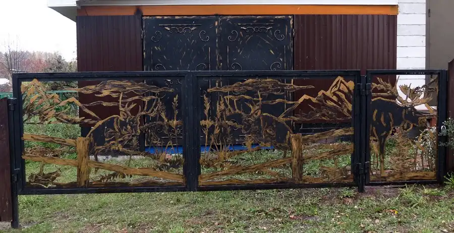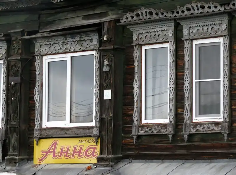 Чей-то чудесный забор на главной улице. Всяких музеев, выставочных залов да культурных центров тут аж несколько штук (на схеме отмечено 4, но мы вроде видели и что-то ещё), думаю самая большая в России концентрация на душу населения, не считая может быть каких-нибудь Соловков. Хотя эта ограда, вроде бы, частного дома