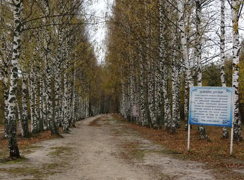 Ну а отсюда уже рукой подать до Светлояра, к берегу которого ведёт красивейшая аллея берёз. Что удивительно - аллея устроена ещё в 1970-е годы, когда стояла закрытой Владимирская церковь - но как и, например, марийские Священные рощи, святое место атеистическая власть берегла в статусе памятника природы