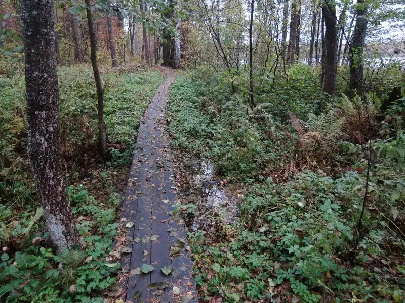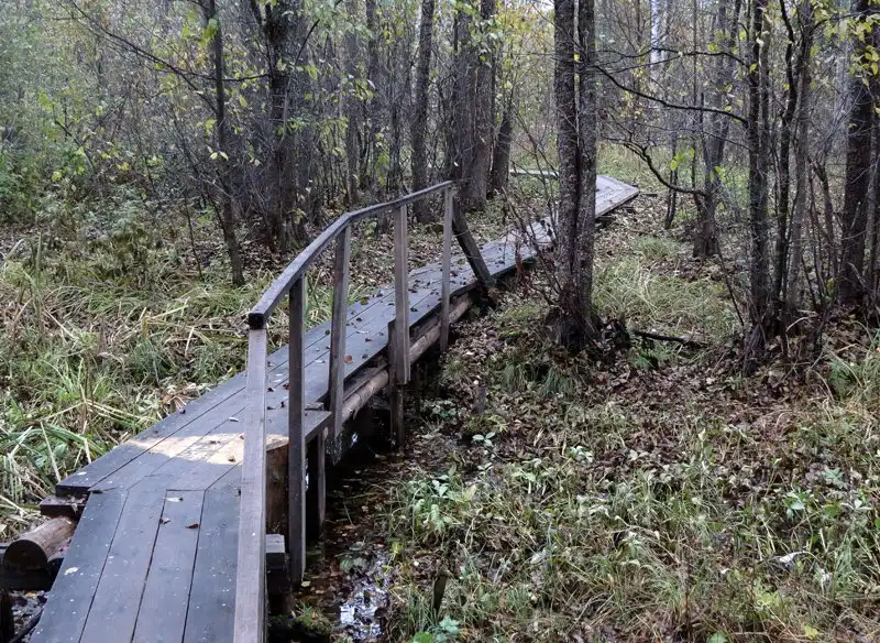 Дальше просто несколько кадров с обхода - он весь выстлан узким настилом, причём не по самой кромке воды; кое-где - кресты и фонари для свечей; кое-где - болота и гати; местами дорожка выходит прямо на берег, а в одном месте сближается с автородорогой и светлоярскую тишину нарушает шум произжающих по битому асфальту машин. Представляю, каково здесь ночью крупных церковных праздников, когда в лесной темноте снуют огоньки свечей в чьих-то руках