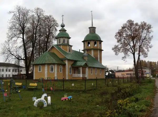 Внутри красивое убранство, полумрак под низким и чуть вогнутым потолком, запах мокрого дерева. В церкви хранится чудотворный список Владимирской иконы Божьей Матери, и в ночь на Ивана Купала по старому стилю (то есть 6 июля, а не на нынешнее равноденствие) её выносят на крёстный ход по селу и берегам Светлояра - праздник это здесь вполне народный