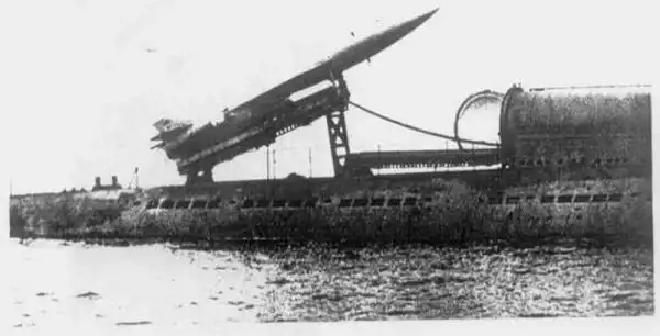 Ракета П-10 на пусковой установке, смонтированной на подлодке Б-64. Осень 1957 г.