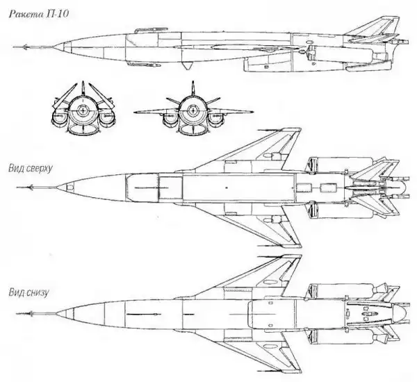 Проекции ракеты П-10. Рисунок Широкорад А.Б. "Оружие отечественного флота. 1945-2000"