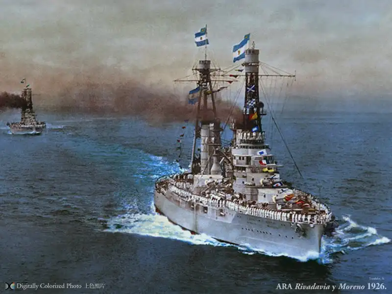 Не лучшим образом обстояли дела у ВМС Аргентины – уже в ходе своего первого плавания к берегам Южной Америки, новенький дредноут «Ривадавия» дважды налетел на камни и столкнулся с баржей. Его близнец – «Морено» знаменит тем, что опозорился на международном военно-морском параде в Спитхеде (1937 год) – аргентинцы не смогли правильно встать на якорь, и «Морено», как клоун, простоял весь парад в кривом положении.