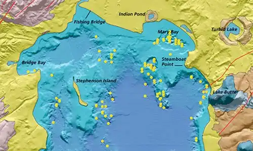 Дно Yellowstone Lake отличается высокой сейсмической активностью. В 2008 году она резко возросла, что сразу привлекло внимание ученых. Потом количество подземных толчков стало увеличиваться, вплоть до 500 в день. Причем, землетрясения обычно происходят в северной части озера.
