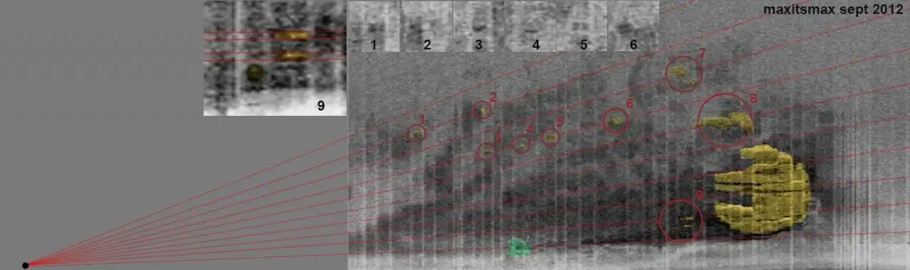 Длинные коридоры с вертикальными стенами, странные угловые углубления, ненормальный "радио" сигнал выше объекта, разделение между самим дискообразным объектом и возвышающимся морским дном, на котором он лежит, странные температуры и отклонения компаса, перегретые органические материалы на образцах, полученных для тестирования, не говоря уже, по крайней мере, об одном значительном круглом отверстии на поверхности, ведущем в объект, который сегодня все еще остается неисследованным.