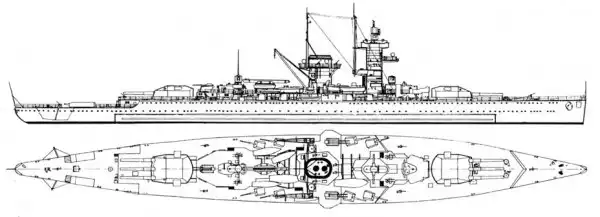 Схема тяжёлого крейсера «Адмирал граф Шпее», 1939 год