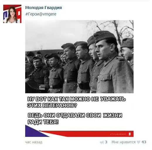 Подобную оплошность также допустила и «Молодая гвардия», которая на своей странице опубликовала пост, который разоблачили буквально за несколько минут. Впрочем потом запись удалили, а администраторы принесли извинения.