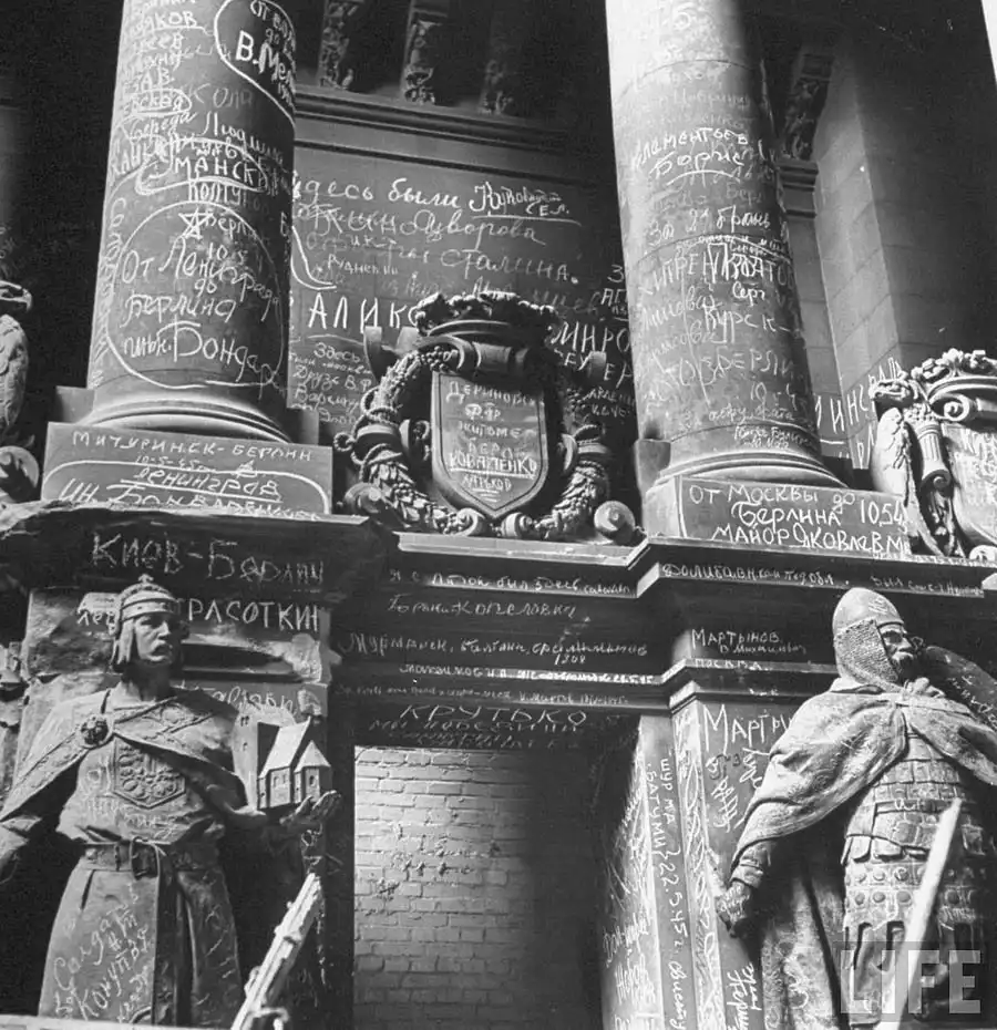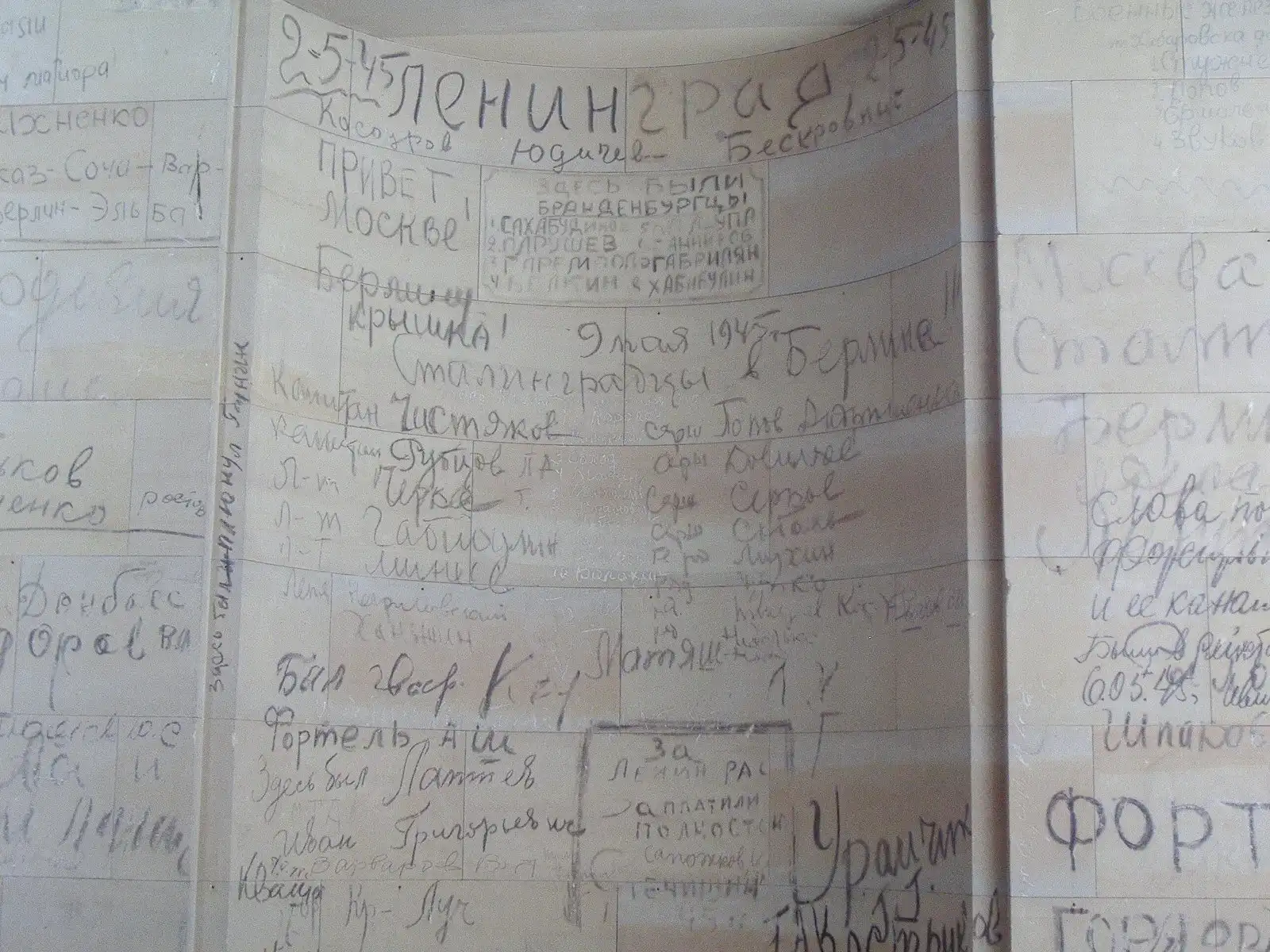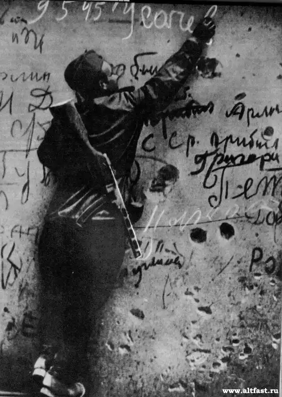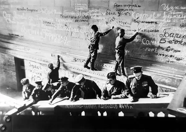 1 мая 1945 на здании Рейхстага водрузили флаг Победы. 2 мая после ожесточенных боев Красная армия полностью очистила здание от врага. В течение ближайших недель там расписались тысячи бойцов Советской Армии и многие из союзников.