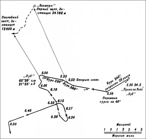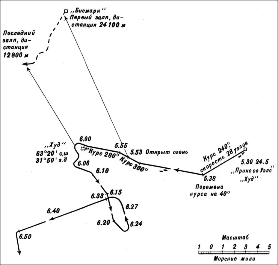 Бой «Бисмарка» и «Принца Ойгена» с линкорами «Худ» и