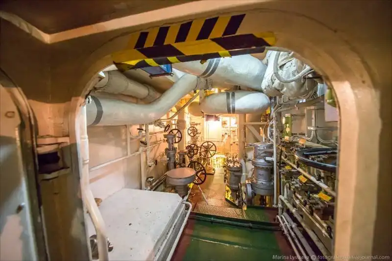 Внизу находится вал гребного винта, который крутит огромный электродвигатель. Всё это расположено ниже ватерлинии.