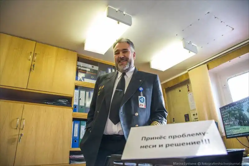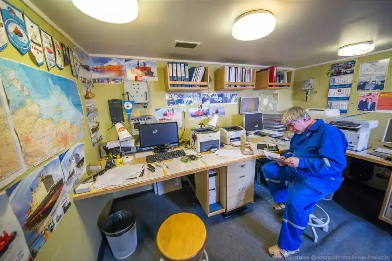 Рабочий кабинет, в который ребята пристроили серп и молот со старого ледокола "Россия".