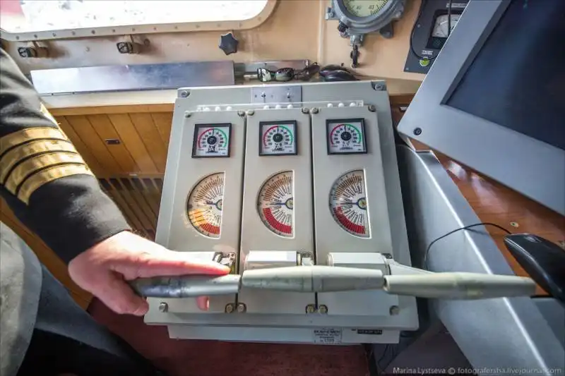 Рукоятки управляют частотой вращения винтов, каждая имеет 41 положение - 20 вперед, 20 назад и стоп.