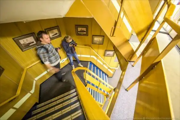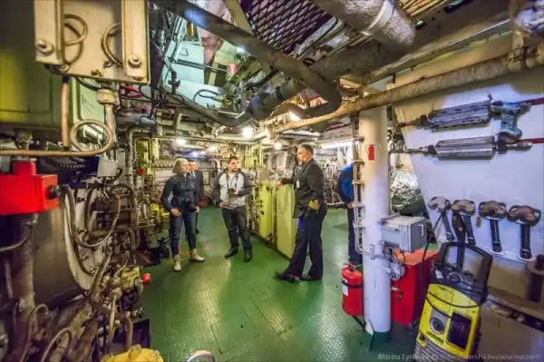 Он показывает нам все судно - от капитанского мостика до его атомного сердца.