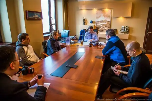 Первым делом нас пригласил к себе в кабинет Мустафа Кашка - первый заместитель Генерального директора и главный инженер, и рассказал, каким будет ледокол будущего и что должен уметь его капитан.