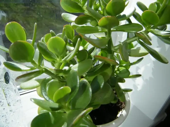 Крассула древовидная, или толстянка, больше известна под именем «денежное дерево». Поселившись в доме, она притягивает материальное благополучие в семью. Размер и форма кроны деревца напрямую влияют на величину доходов. Высаживать толстянку желательно в горшки красных оттенков, разместив на днище несколько монеток.