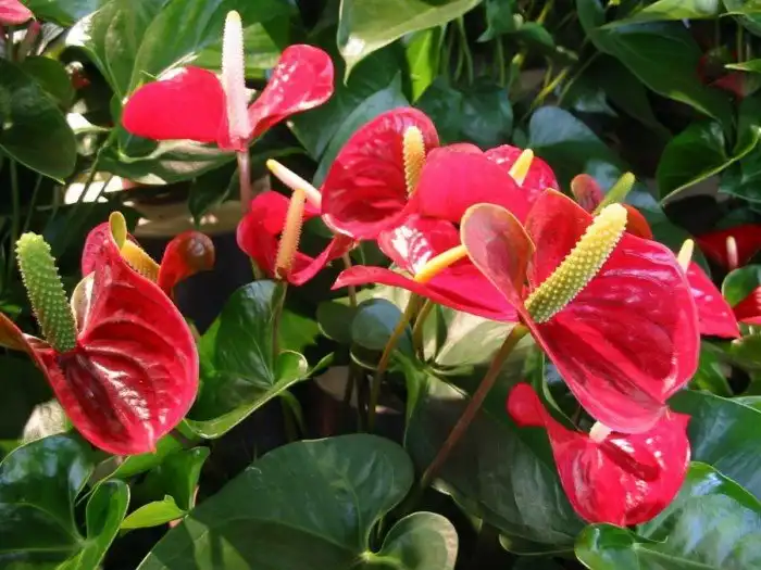Антуриум – талисман мужской силы, который благотворно влияет на потенцию. Известно, что красный антуриум овеян легендой — якобы в цветок превратилась девушка. Уход за антуриумом в домашних условиях требуется непростой: он любит тепло и высокую влажность, а дома не всегда можно создать такие же условия, как в тропических лесах. Название цветка на латыни происходит от слов «хвост» и «цветок», что очень точно отражает облик соцветия тропического растения. А вот в народе растение именуют «цветком фламинго», «красным языком», но также называют антуриум и мужским счастьем.