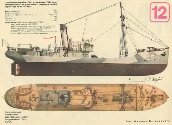 В годы предвоенных пятилеток для добычи рыбы в Белом и Баренцевом морях был создан довольно мощный траловый флот, насчитывавший накануне Великой Отечественной войны 86 морских траулеров. Это были большей частью паровые двухмачтовые суда со стальными корпусами, специально созданные для работы в суровых условиях Заполярья. Они имели поперечную систему набора, одну палубу, надстройку в кормовой части и полубак. Полное водоизмещение составляло 1100-1200 т, длина 51 метр, а осадка и высота надводного борта — примерно по 4,5 м. Паровая четырехцилиндровая машина мощностью 650 л. с. обеспечивала судну скорость 9,5-11 уз, которая при сильном шторме резко падала. Наибольшая дальность плавания составляла до 4000-4300 миль, автономность 40-50 суток. Команда насчитывала 40 человек. Имелось две шлюпки. В состав специального оборудования и помещений входили паровая траловая лебедка с тяговым усилием 8-10 т, тралы, грузовая стрела, трюм для приема 400 т рыбы, установки для переработки рыбных отходов в муку и получения рыбьего жира. Траулеры сравнительно неплохо были обеспечены радиосвязью и штурманскими приборами, на некоторых из них имелись и радиопеленгаторы.