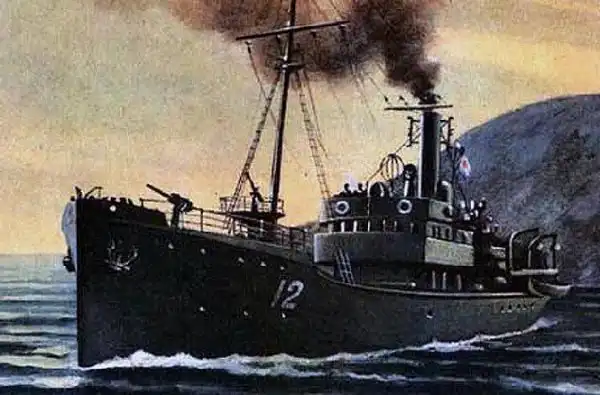 Сторожевой корабль "Пассат" в ночь на 13 июля 1941 года эскортировал два спасательных судна. Переход начался в туманную и дождливую погоду, однако спустя сутки прояснилось, и на пересечение курса советских судов неожиданно вышли три германских эсминца. Обнаружив противника, командир “Пассата”, старший лейтенант В.Л. Окуневич, отдал приказ сопровождаемым судам идти к берегу, чтобы укрыться в бухте Гавриловской, оповестил по радио о вражеских кораблях и ринулся навстречу фашистам. Две сорокапятки, вот и все вооружение «Пассата» против орудий эсминцев. Однако моряки сторожевика вступили в неравный бой, стремясь отвлечь внимание от спасательных судов. Одно судно уже было серьезно повреждено, однако “Пассат” своим огнем и дымовой завесой дал возможность спустить шлюпки и спастись команде (более чем 70 чел.). Второе судно успело скрыться без потерь. Но сам «Пассат» попал под сосредоточенный огонь. Он был разбит и погружался в воду, но кормовая пушка продолжала действовать. Это вел огонь по противнику последний оставшийся в живых матрос. Таков был подвиг этого небольшого корабля.