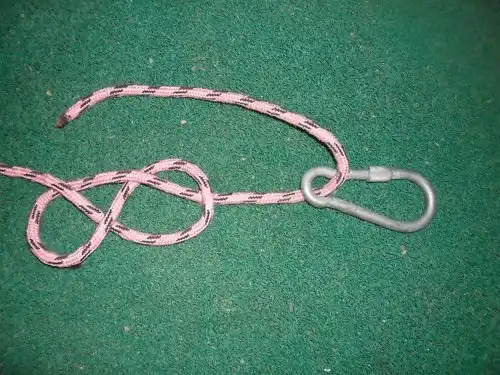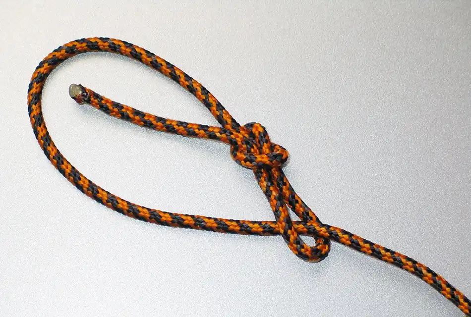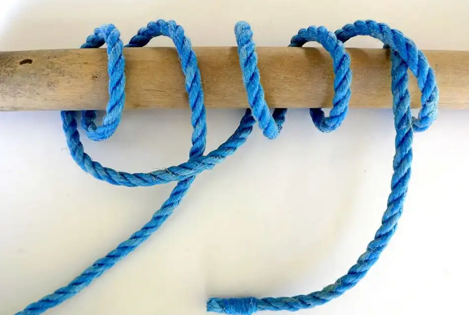 Один конец веревки загибаем и делаем петлю, проводим под основной веревкой и делаем вторую петлю;
