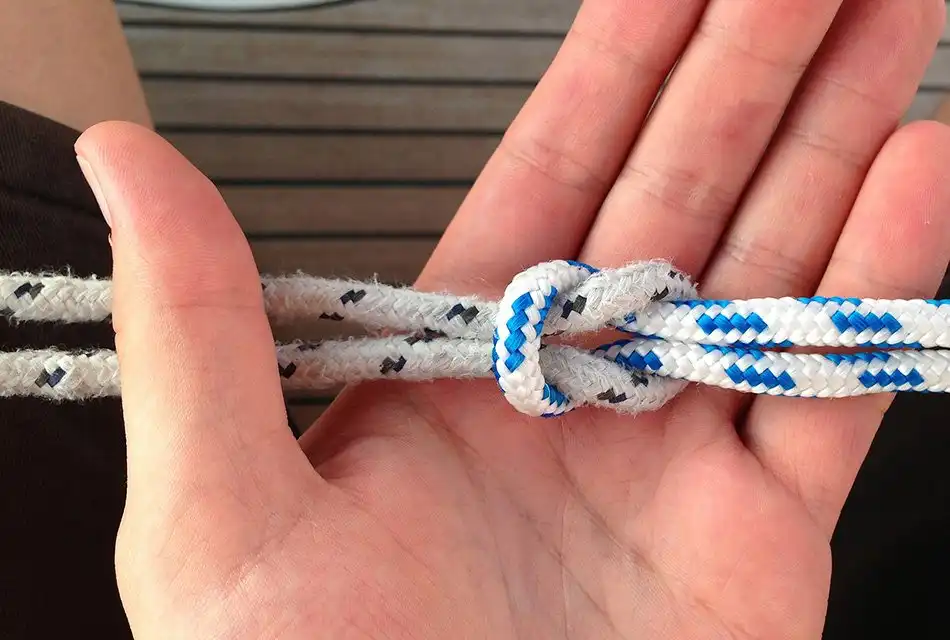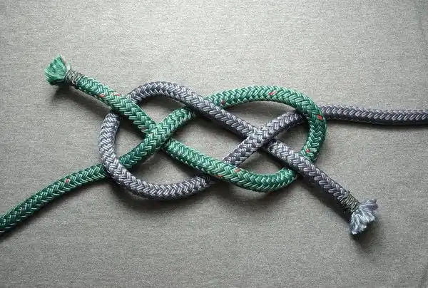 Этот морской узел незаменим для связывания двух тросов (даже стальных, на которые будет приложено значительное усилие, например при вытаскивании трактором застрявшего в грязи на полколеса тяжелого грузовика).