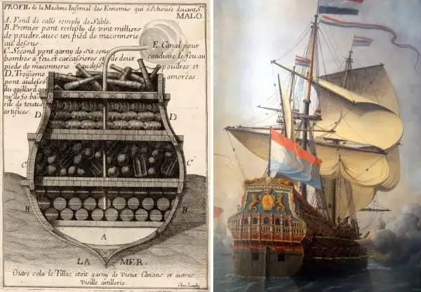 де Вивонна таких брандеров не было. Справа: голландский