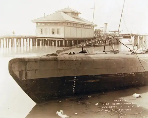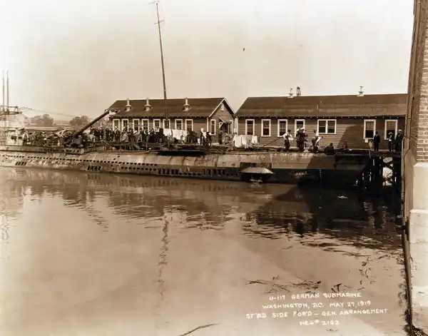 Лодка U-117 была спущена на воду 10-го декабря 1917-го года на верфи AG Vulcan в Штеттине, введена в строй кайзеровского флота 28-го марта 1918-го года. Лодка совершила 1 боевой поход (11.07-16.08.1918). 21-го ноября 1918-го года лодка сдалась британцам в Гарвиче. В апреле 1919-го года совершила переход в Вашингтон, где с 27-го апреля 1919-го года была открыта для публики. В 1921-м году лодка использовалась в качестве мишени при проведении испытаний эффективности авиационного вооружения американскими военными (утоплена летающими лодками Felixstowe F5L)