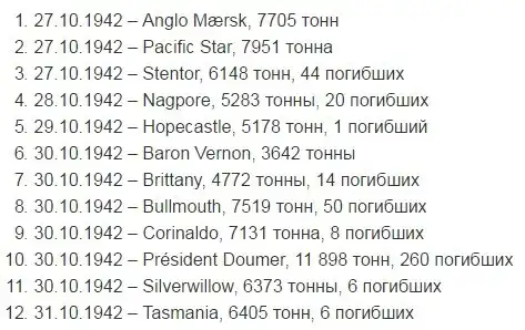 разгрома конвоя SL-125 — на его счету три судна на 23 245