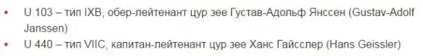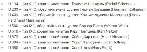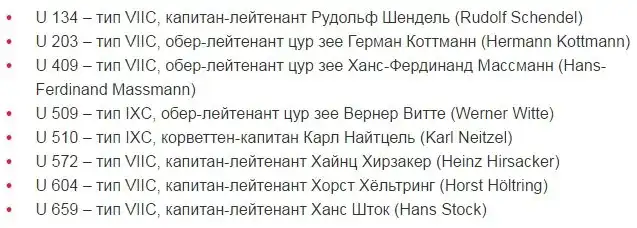 В противостоявшую конвою немецкую группу «Секира» изначально вошли восемь подводных лодок со следующими командирами: