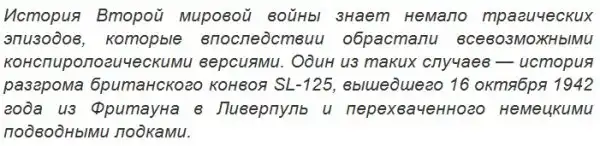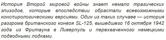 Такова история конвоя SL-125, которому, по несчастливому жребию судьбы, было суждено остаться в памяти моряков военного времени как «конвою-приманке», который помог разгореться «Факелу» союзников.