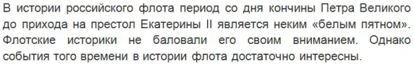 28 января 1725 года на российский престол взошла императрица Екатерина I. Не следует, видимо, перечислять все наследство, которое досталось ей от покойного мужа. Среди прочего Петр Великий оставил потомству и Отечеству мощную армию и сильный флот. Только Балтийский флот насчитывал около 100 вымпелов: 34 линейных корабля, вооруженных 50-96 пушками, 9 фрегатов, имевших на борту от 30 до 32 орудий, другие боевые корабли. Кроме того, в постройке находилось еще 40 судов. Флот России имел свои базы: Кронштадт — укрепленный порт и крепость, Ревель — гавань, Санкт-Петербург — адмиралтейство с верфью и мастерскими, Астрахань — адмиралтейство. В командный состав морских сил входили 15 флагманов, 42 капитана разных рангов, 119 капитан-лейтенантов и лейтенантов. При этом большая его часть — русские. Из 227 иноземцев лишь 7 находилось на командных должностях. И хотя отечественные флотские специалисты составляли большинство, к тому времени чувствовался недостаток в хороших штурманах, а в кораблестроении — во второстепенных мастерах. Недаром Петр намечал организовать учебное заведение, готовившее специалистов-корабелов.
