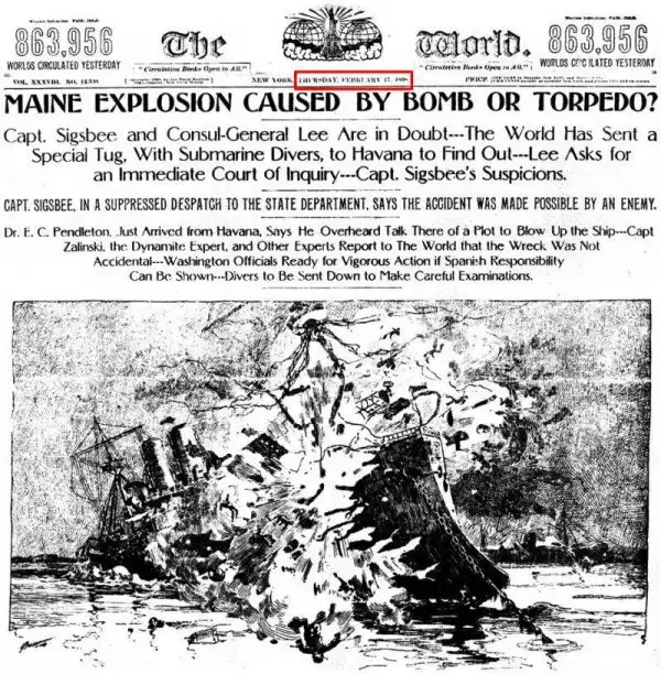 Масла в огонь подлил отчет комиссии, опубликованный 21 марта. Из него следовало, что корабль был подорван подводной миной или торпедой. Виновников (как это и сейчас происходит в случае в «Боингом») комиссия прямо не назвала, но, разумеется, американцы и без этого уже понимали, что сделали это испанцы!
