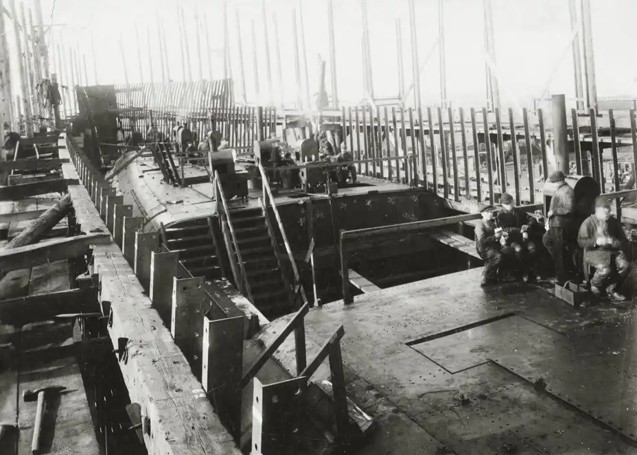 Из-за долгого согласования чертежей между проектировщиками и МТК, а также задержек в поставках стали с заводов строительство началось только в декабре 1899 года, однако продвигалось довольно быстро. Официальная закладка корабля состоялась в Данциге 29 февраля 1900 года – к тому времени его корпус был доведён до уровня броневой палубы.