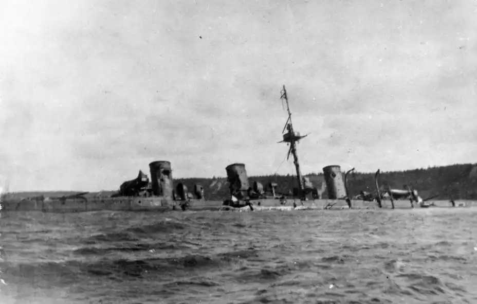 Затопленный «Новик» на камнях возле Корсаковского поста