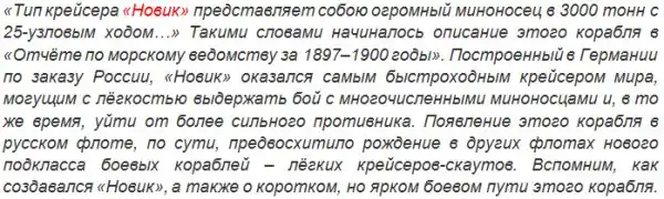 Оценивая проект крейсера, следует сказать, что он получился весьма удачным. «Новик» полностью отвечал требованиям, которые предъявлялись к нему при проектировании. Сочетая в себе высокую скорость, довольно сильное вооружение и небольшие размеры, он успешно выполнял функции разведчика, защитника русских миноносцев и был серьёзной угрозой для миноносцев врага. Высокое качество постройки позволило ему долго вести активные действия, несмотря на эксплуатацию «на износ». По проекту «Новика» в Санкт-Петербурге были построены ещё два крейсера («Жемчуг» и «Изумруд»), которые развивали меньшую скорость, но были лучше вооружены. Проект «Новика» не остался без внимания и за границей. На основе российского опыта в Англии, Германии, Италии и США были построены несколько серий кораблей-разведчиков, позднее получивших название крейсеров-скаутов и принявших активное участие в Первой мировой войне.