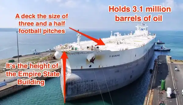 Вдумайтесь: тормозной путь гиганта составляет 10,2 километра, а диаметр разворота превышает 3,7 километра! Так что среди других судов, снующих на этих акваториях, этот супертанкер — что слон в посудной лавке.