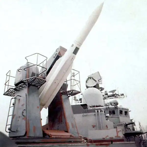- ЗРК «Ураган» (с 14 ЭМ-ЗРК «Ураган-Торнадо»). Состоит из двух однобалочных наводящихся ПУ, расположенных на полубаке и за вертолетной площадкой. Боекомплект - 48 «9М38М1» зенитных управляемых ракет. СУ ЗРК - 6 радиопрожекторов для подсветки целей и вычислительного оборудования. ЗРК способна работать по надводным кораблям. Одновременно ЗРК способна наносить удар по 1-6 воздушным объектам на высоте до 15 километров на расстоянии до 25 километров. Вероятность поражения самолет/КР – до 0.96/0.86;