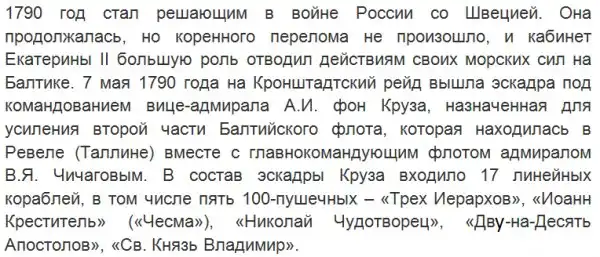Действительно, ревельская эскадра под командованием В.Я. Чичагова в составе 12 линейных кораблей и четырех фрегатов вышла на соединение с кронштадтской еще 16 мая, но все время оставалась у Наргена.