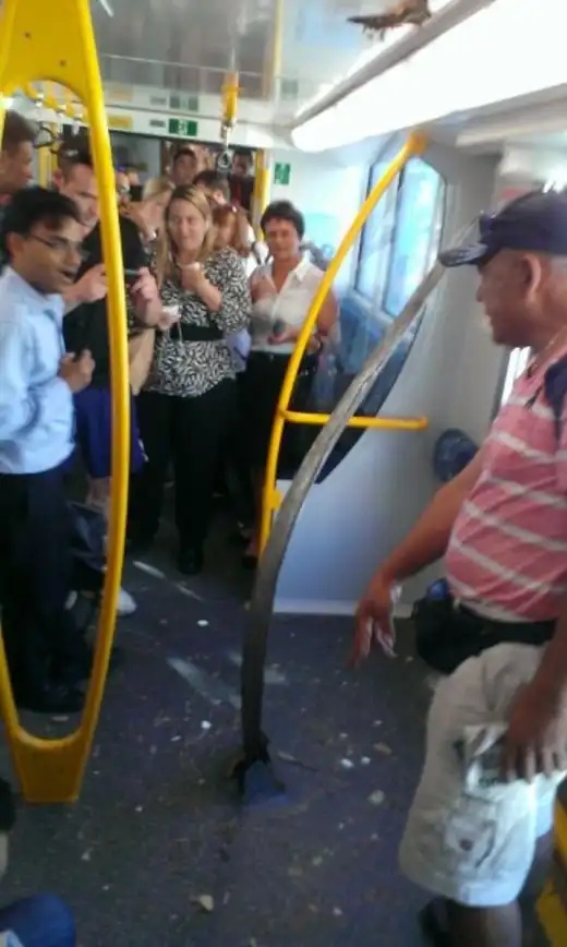 В сошедшем неподалеку от Сиднея поезде кусок металла пробил дно одного из вагонов и оказался в салоне, чем не на шутку испугал пассажиров. Кусок металла оказался достаточно длинным, но, к счастью, никто из пассажиров от него не пострадал.