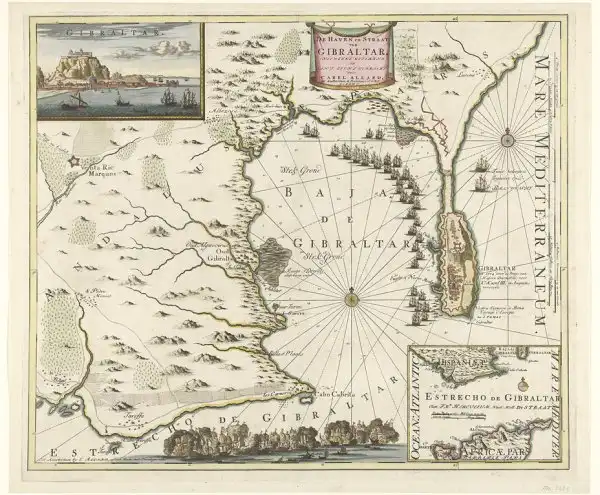 1 августа 1704 года союзный англо-голландский флот в составе 45 английских и 10 голландских линейных кораблей подошёл к фортам Гибралтара. С кораблей были спущены шлюпки, и под барабанный бой губернатору дону Салинесу было передано две бумаги. В письме короля Португалии эрцгерцог Карл признавался новым испанским королём Карлом III. Воззвание принца Гессен-Дармштадского уверяло, что союзники пришли сюда с добрыми намерениями, и сразу же после присяги на верность Карлу III они удалятся, не причинив никому вреда.
