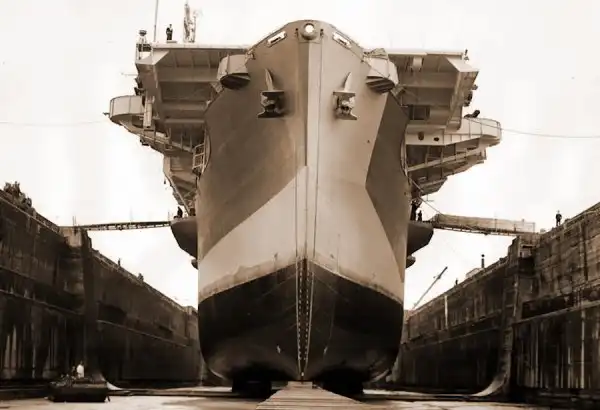 Авианосец «Тэйн» в сухом доке на достройке в Канаде,