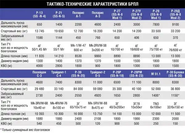 Во всех официальных документах, опубликованных за последние 20 лет, как забрасываемый вес американских БРПЛ указываются цифры 1500 килограммов (в некоторых источниках – 1350) для «Трайдент-1» и 2800 килограммов для «Трайдент-2». Это лишь суммарный вес боеголовок – восемь Mk-4RV/W-76 по 165 килограммов или столько же Mk-5RV/W-88 по 330 килограммов каждая.