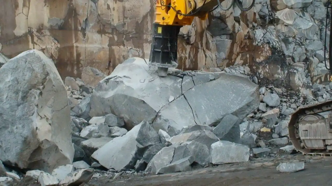 Его принцип работы по разрушению больше похож на работу обычного молота, где сильный металлический стержень, подвижный в кожухе, просто поднимается вверх, а затем с огромной силой падает на материал, заставляя его как бы раскалываться. Таким образом, на небольшую площадь приходится такое количество ударной энергии, что материал не в состоянии ее поглотить, и в результате он просто распадается. То есть сам процесс разрушения происходит с большой точностью и минимальной вибрацией, что очень полезно, к примеру, при проведении сноса зданий или разрушении металлических шлаковых отходов.