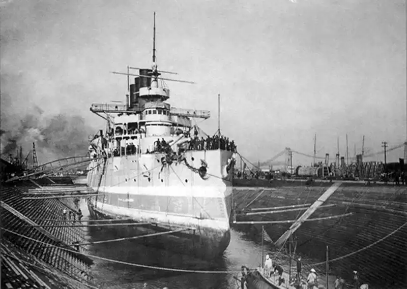 Эскадренный броненосец "Ретвизан" в сухом доке Филадельфии,