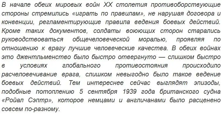 Стоит отметить, что, связанные по рукам договорами о ведении морской войны, противники активно пытались сбросить эти юридические «кандалы», активно обвиняя друг друга в нарушениях. Поэтому залпы пропаганды начали звучать с самого начала войны, и первыми под них попали немецкие подводники как самые активные участники событий.
